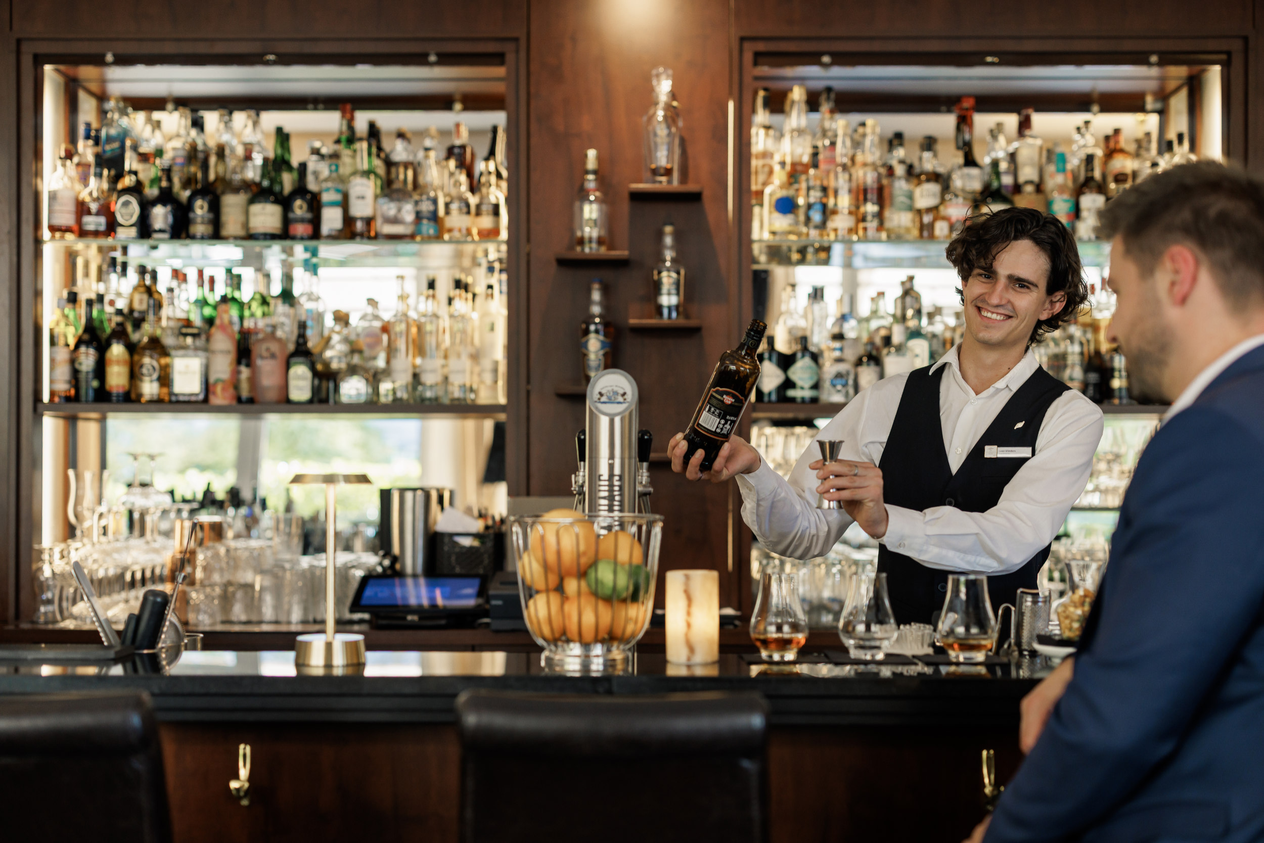 Behaglichkeit. Ein Kamin und eine umfangreiche Bibliothek laden zum Verweilen ein. Die Barkarte offeriert