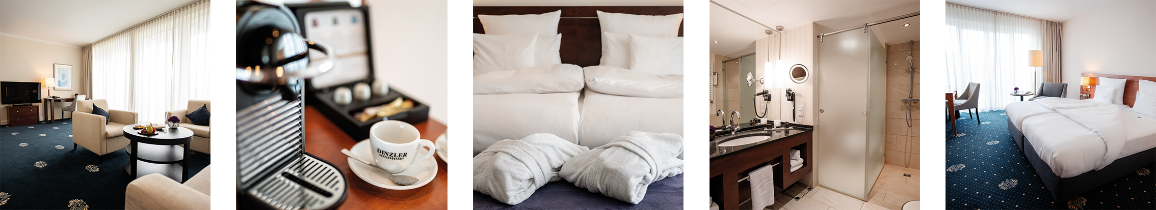 Stilvolle Badezimmer mit Naturstein sorgen für ein elegantes Ambiente. Zahlreiche Inklusivleistungen – darunter Frühstücksbuffet mit Live-Cooking, kostenfreie Minibar, WLAN sowie Wellness- und Fitnessbereich – sind im Zimmerpreis enthalten.GOURMETRESTAURANT AUBERGINE – AUßERGEWÖHNLICH, SCHNÖRKELLOS, KLAR